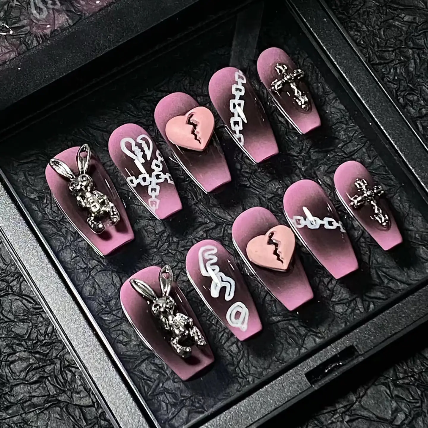 Violent Rabbit Pink Heart Gradient Handmade Press-on Nails