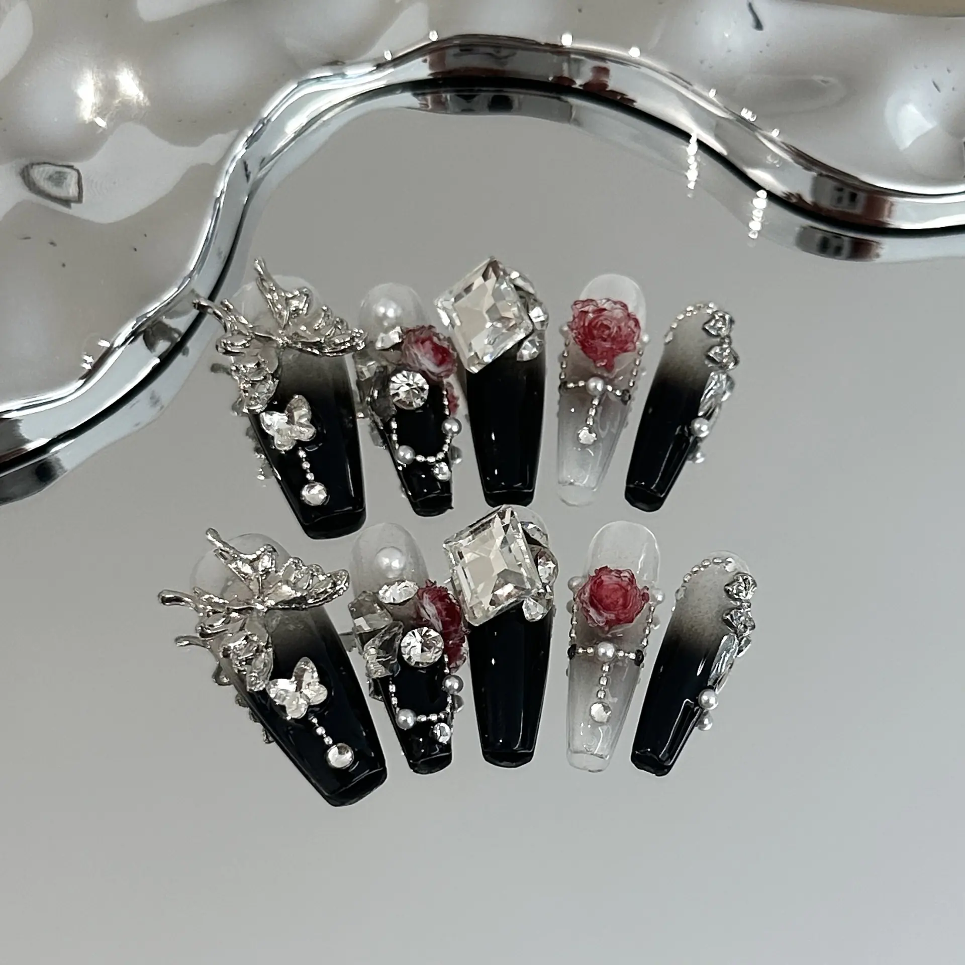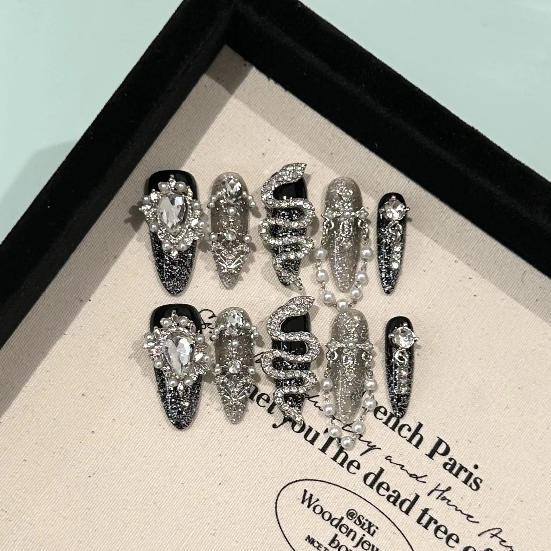 Luxurious Pearl & Full-diamond Snake Premium Handmade Press-on Nails