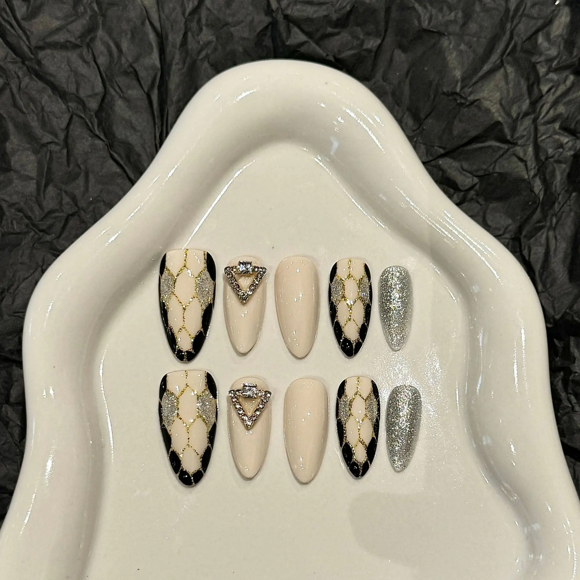 【 Alien 】 Snake pattern Black and white diamond light luxury hand-painted wearable armor quantity