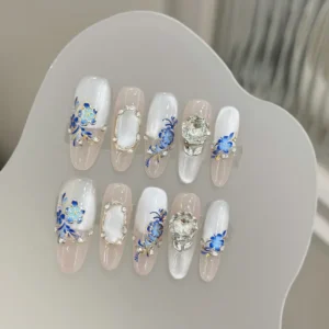 Handmade Premium Cold-Tone Rose Press-On Nails