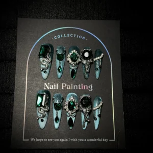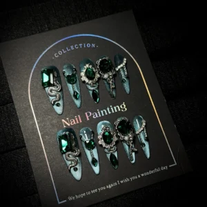 Green Cat Eye & Sparkling Diamond Premium Handmade Press-on Nails quantity