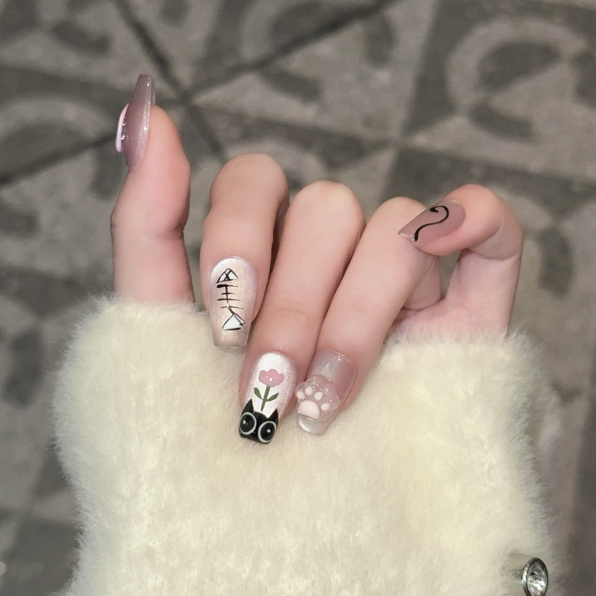 New Style Gentle Gradient Blush Hand-Painted Press-On Nails