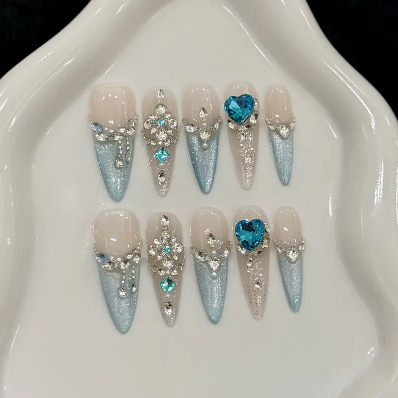 [Ice Queen] Ice-Blue Full-Diamond Royal-Style Handmade Press-On Nails quantity